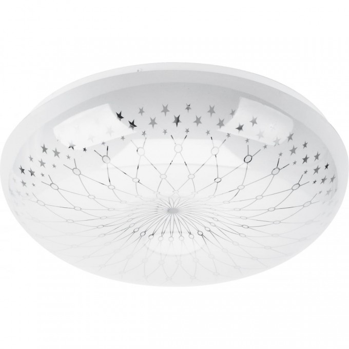 Восхитительный дизайн плафона создаст приятную обстановку в Вашем доме. Узор из переплетающихся линий прекрасно сочетается с круглым плоским корпусом. Крохотные звезды, разбросанные по окружности рассеивателя, придают светильнику динамики. Такая LED люстра идеальна для оформления света детской, гостиной или спальне.