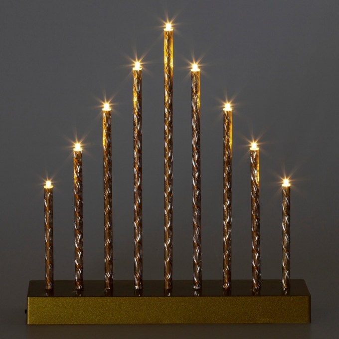 Светодиодный светильник ЭРА ENGS-09 "Свечи" (арт. Б0051935) с приятным теплым светом подарит неповторимую новогоднюю атмосферу в Вашем доме. В отличие от обычных свечей, светодиодные абсолютно безопасны и станут необычным украшением стола в новогоднюю ночь, которое оценят все гости! Декоративный светильник размером 24.8 х 5.7 х 25.3 см работает от 3 батареек AA и имеет класс защиты IP20 (рекомендуется использовать внутри помещений). Фигура выполнена в виде 9 свечей разной высоты, расположенных симметрично по возрастанию к центру. Данный настольный зимний светильник - чудесный подарок для любимых на Новый год и Рождество. Такой новогодний декор для дома всегда создает дома настроение праздника!