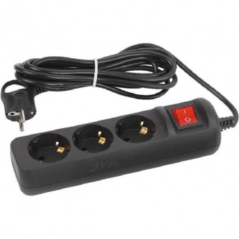 Удлинитель электрический ЭРА UX-3es-5m-B с заземлением с выключателем 3 розетки 5м ПВС 3x0,75мм2 10А черный